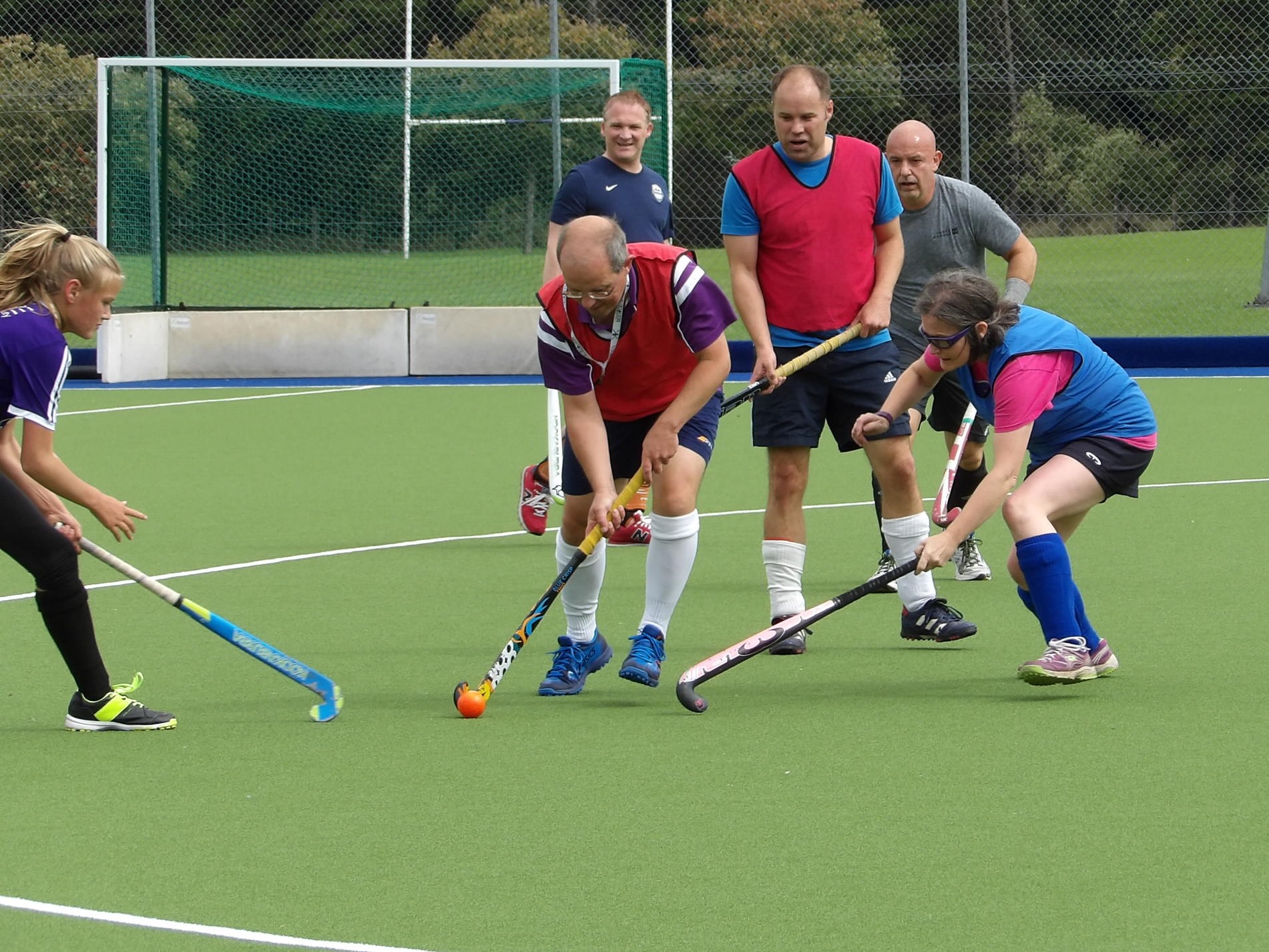 Well we got away with it by the skin of our teeth in terms of the weather - threatening all day, but not actually raining until the last few minutes, but what a good time we had! There was hockey skittles, hockey bowling, hockey croquet, target shooting and the legendary "bash the ball at a rolling tyre" game. There were beefburgers, cheeseburgers, cakes, biscuits and assorted unhealthy stuff. There were mini games, medium games, and a big game when the dads and lads, lots of daughters, and quite few players from the adult sections just all got on the pitch and played some hockey.